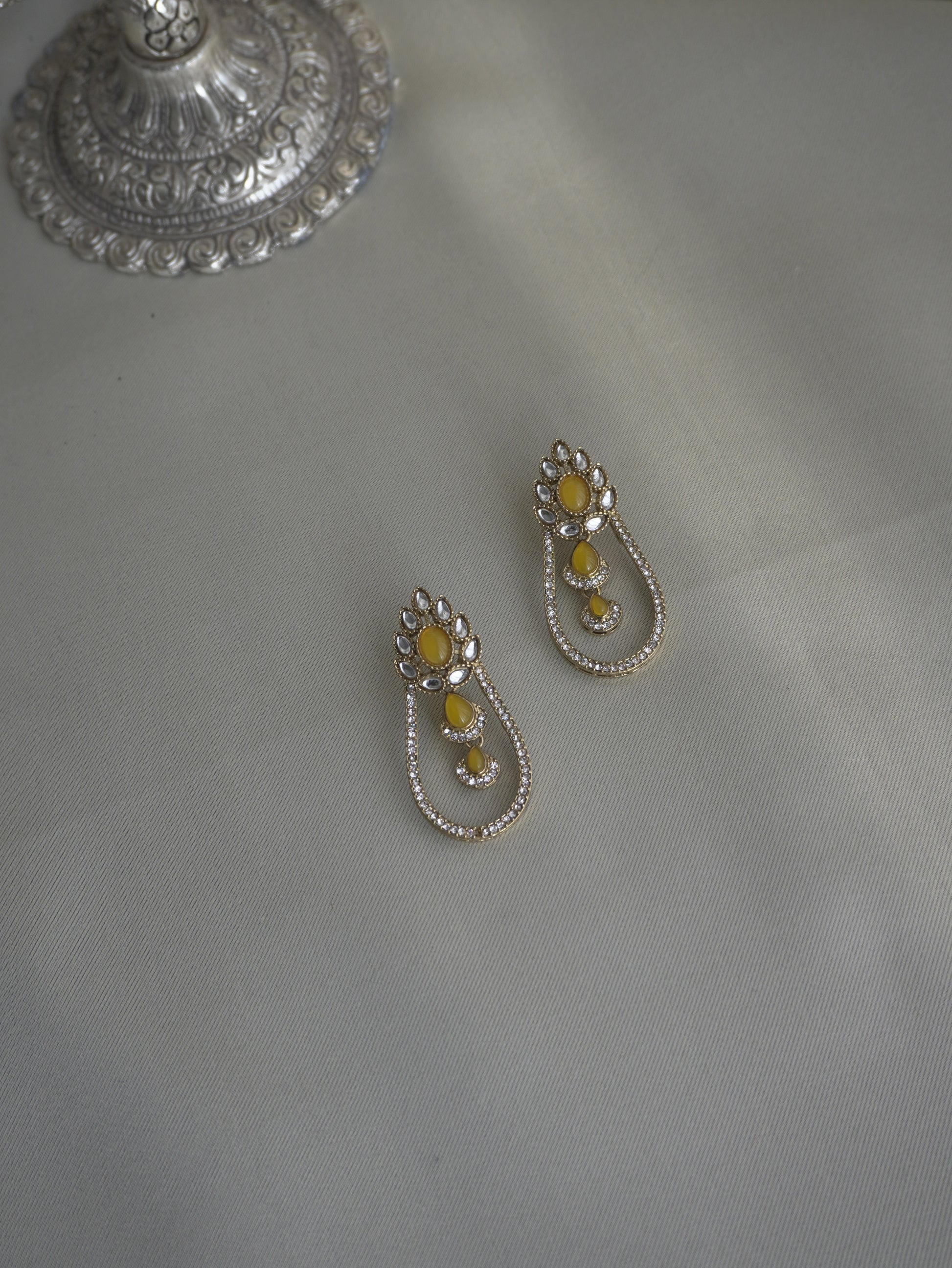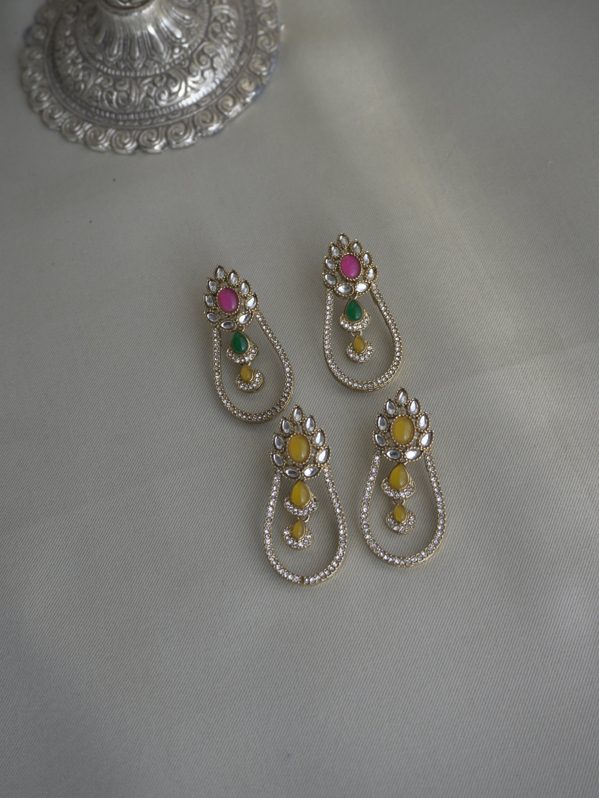 Bright, elegant and full of festive charm, our Aarini Earrings feature a floral top paired with a sparkling loop design and soft multicolour stones. These earrings add an instant pop of colour to kurtas, sarees, lehengas and everyday traditional wear. Lightweight and comfortable, they’re perfect for haldi, mehendi, festive brunches or even college events where you want to keep it pretty but not too heavy. Skin-friendly finish for all-day wear.