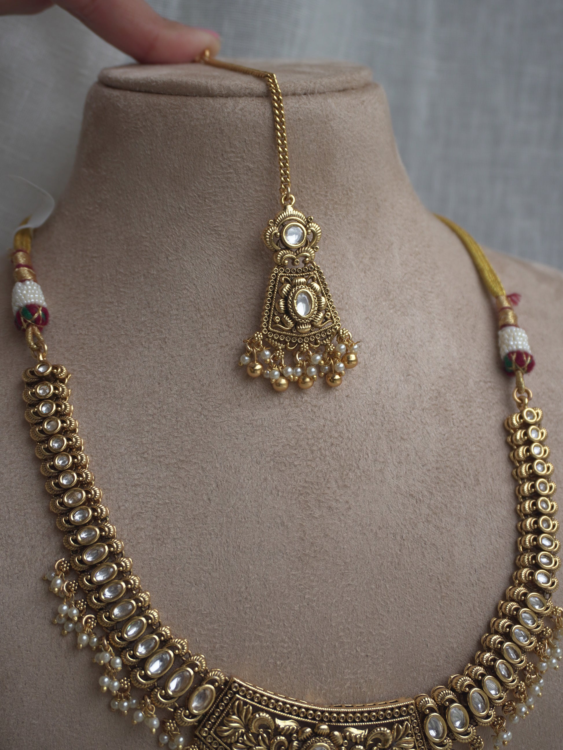 Antique Hasli Necklace Set (Necklace, Earrings & Maang Tikka)