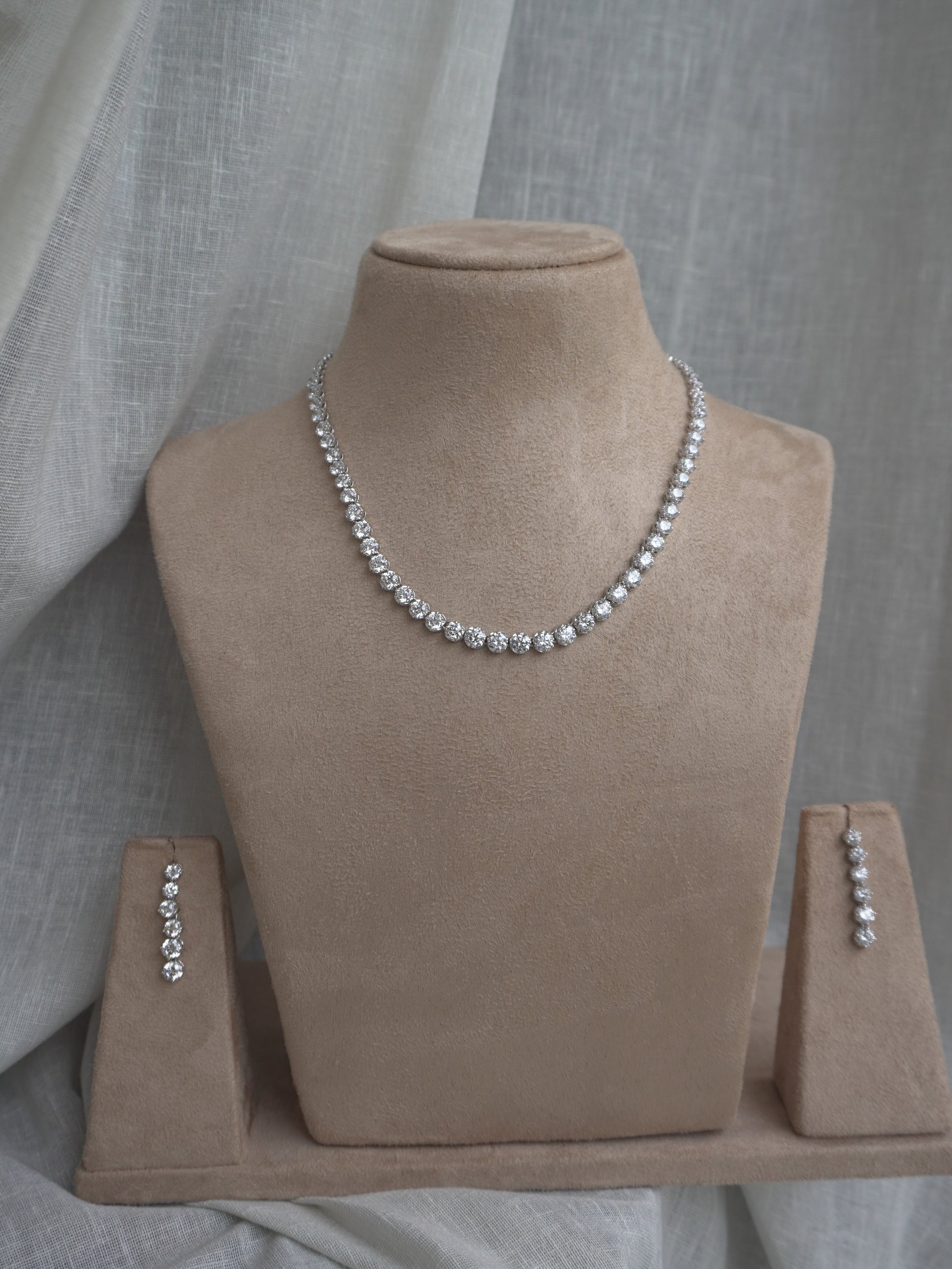 The Classic Tennis Necklace Set brings timeless elegance to your jewellery collection. Featuring a sleek row of high-shine simulated diamonds, this versatile design transitions effortlessly from everyday sophistication to evening glamour.