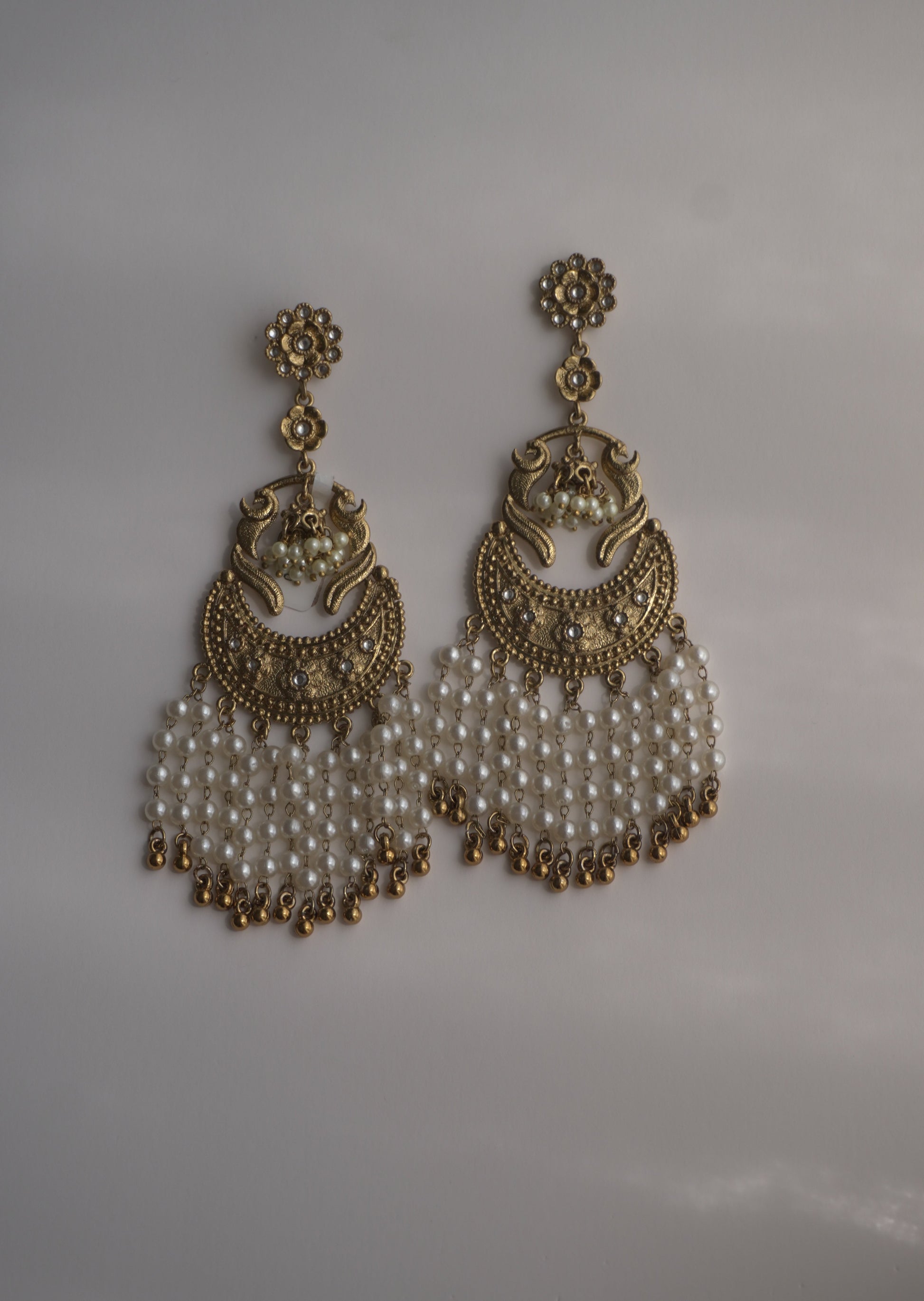Gold Pearl Chandbaali Earrings