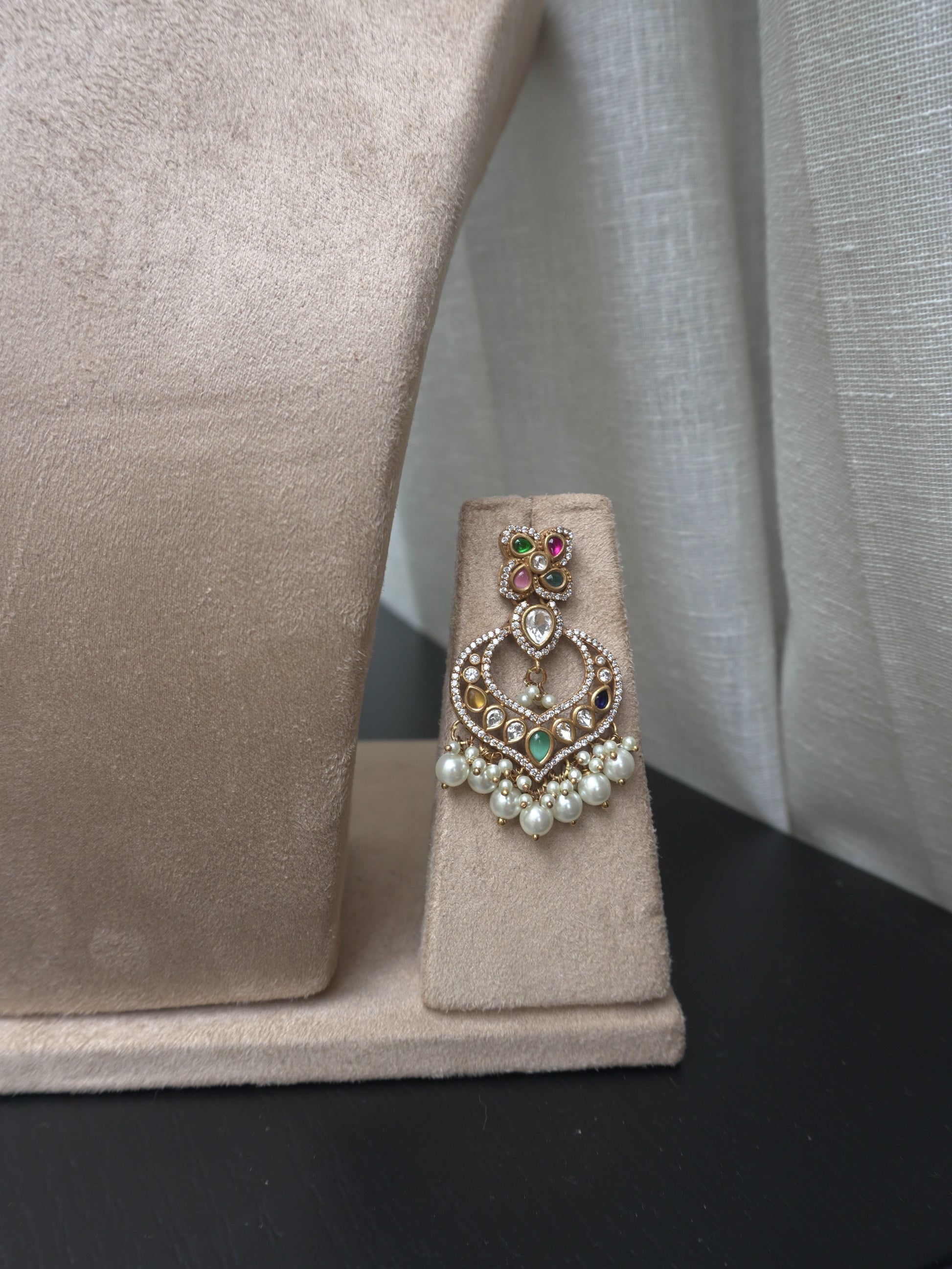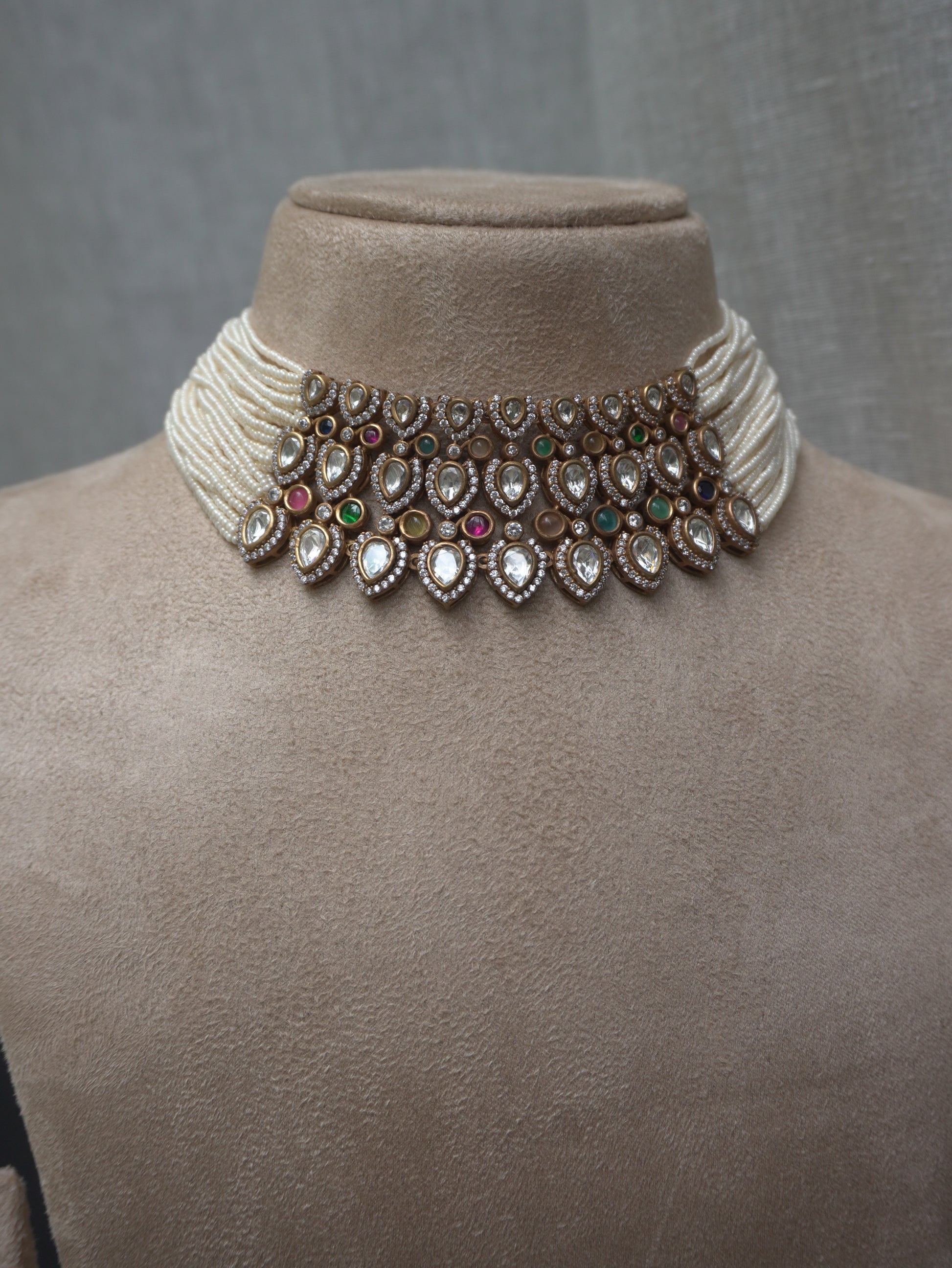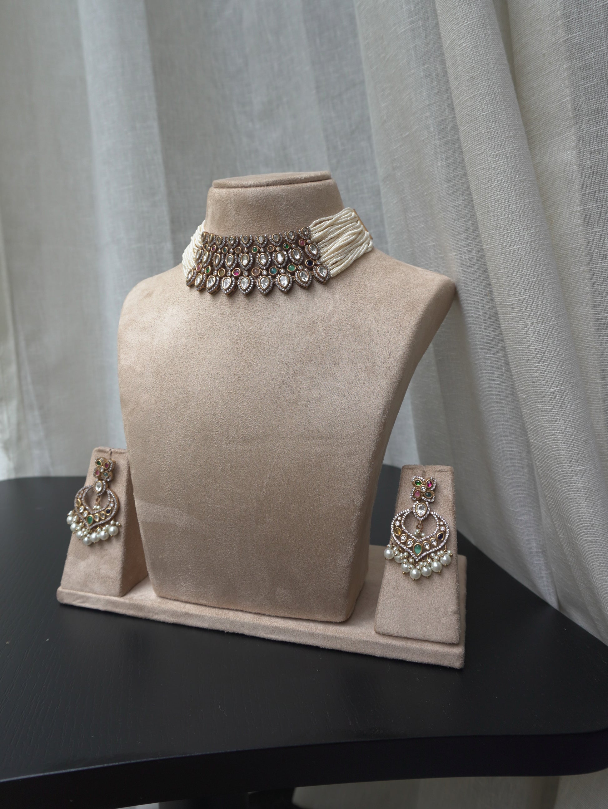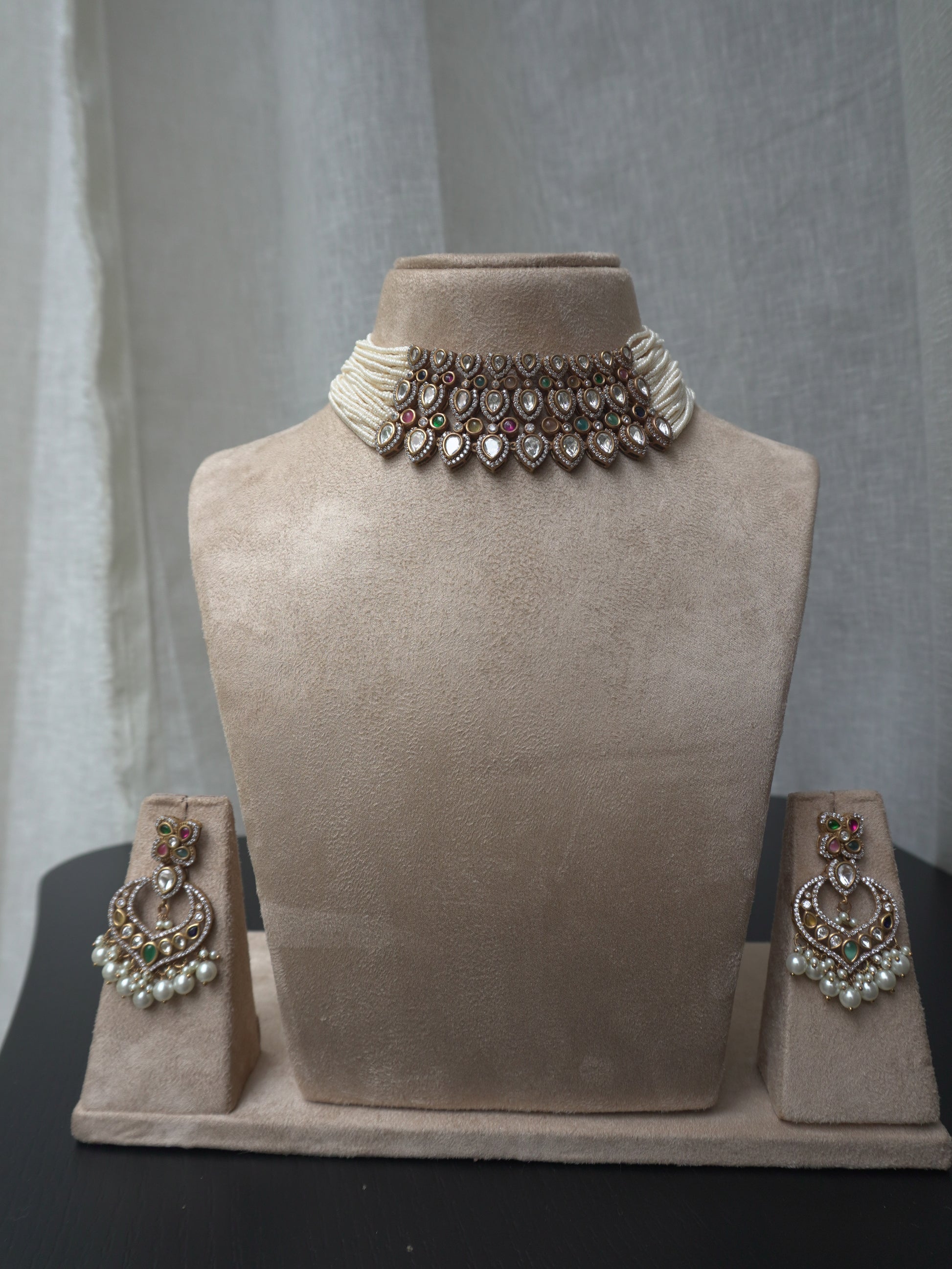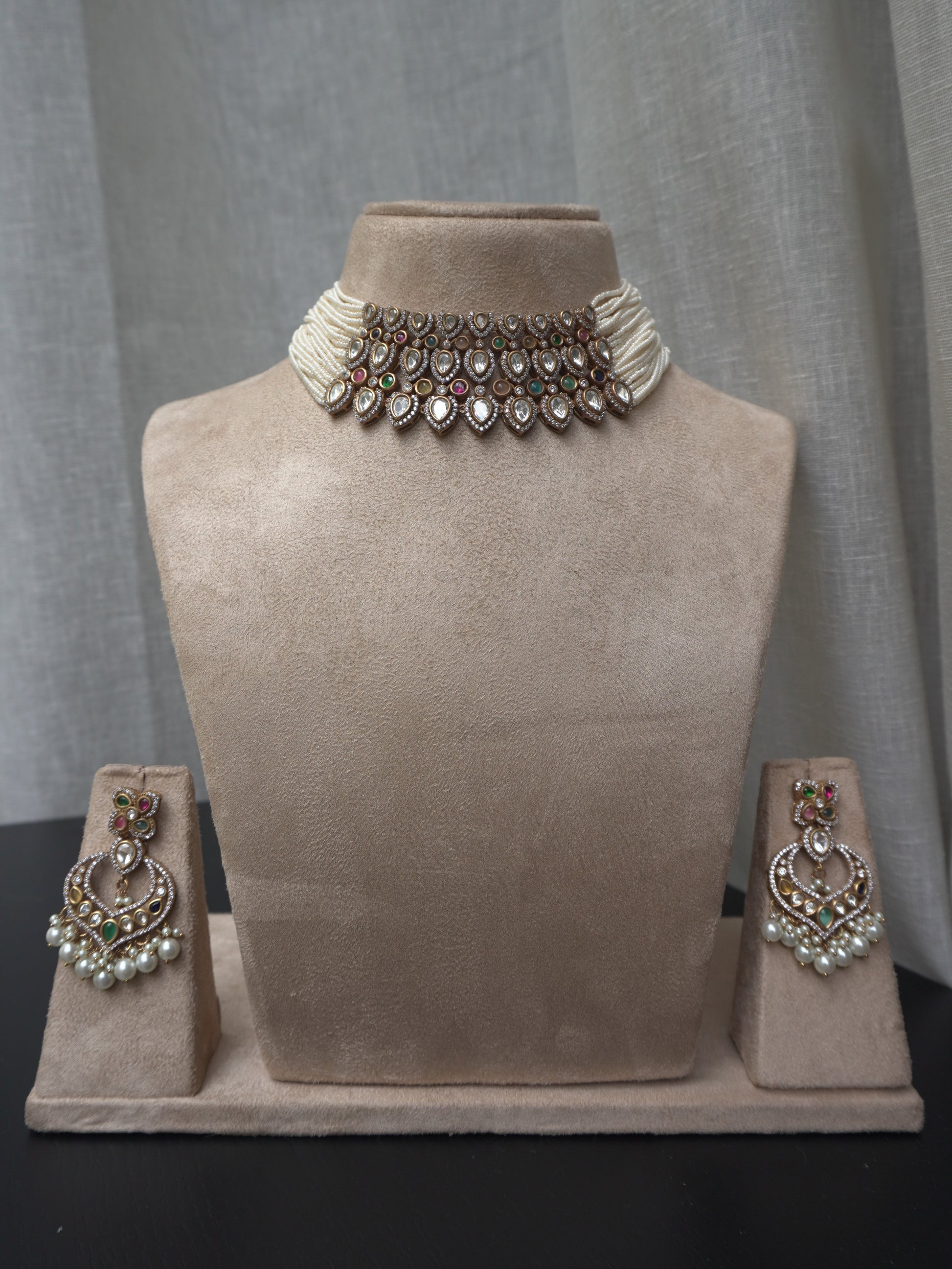Pearl Polki Statement Choker Necklace Set (Necklace & Earrings)