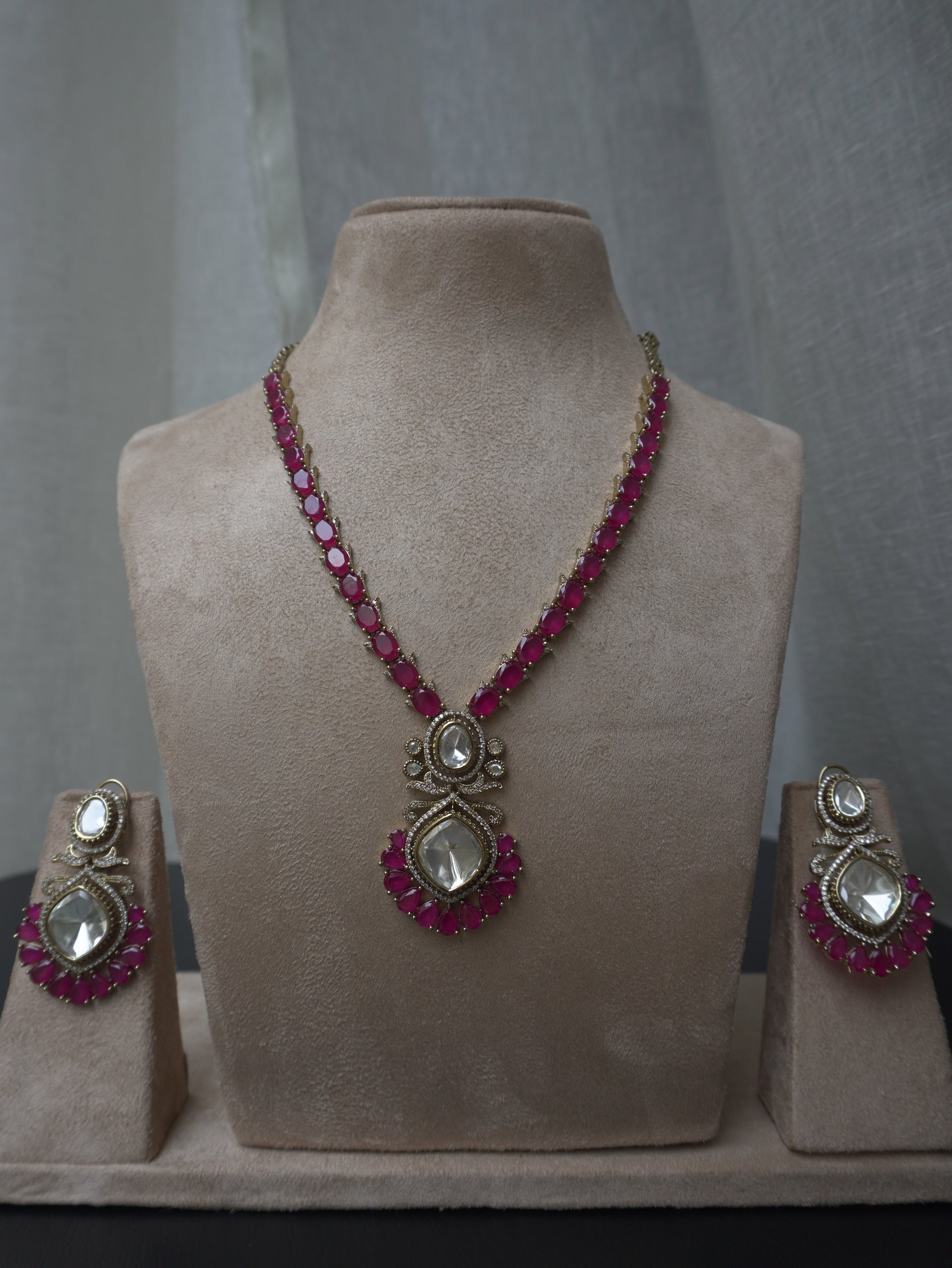 Noor Ruby Polki Necklace Set (Necklace & Earrings)
