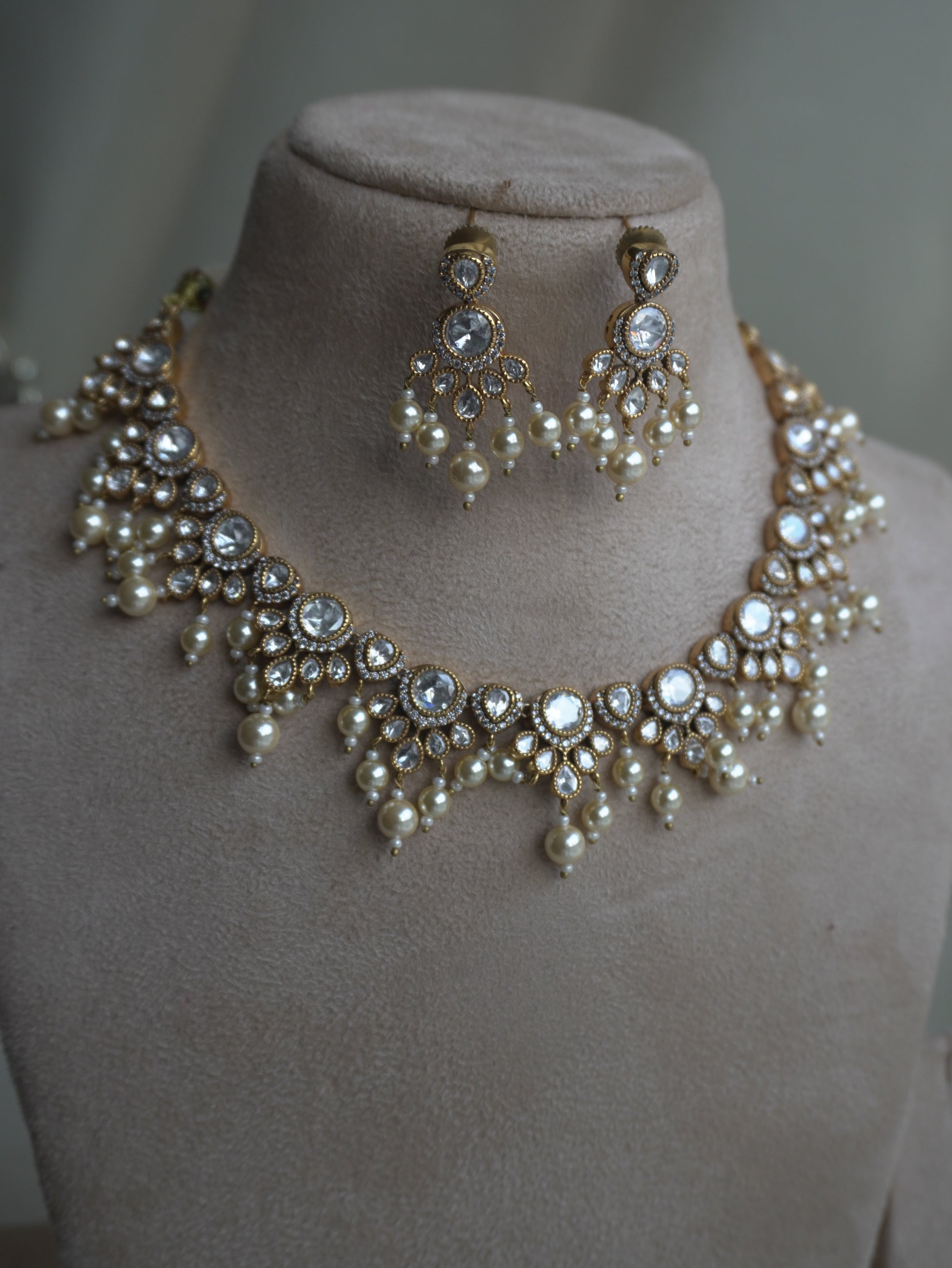 Material: Brass alloy, polki stones, faux pearls
