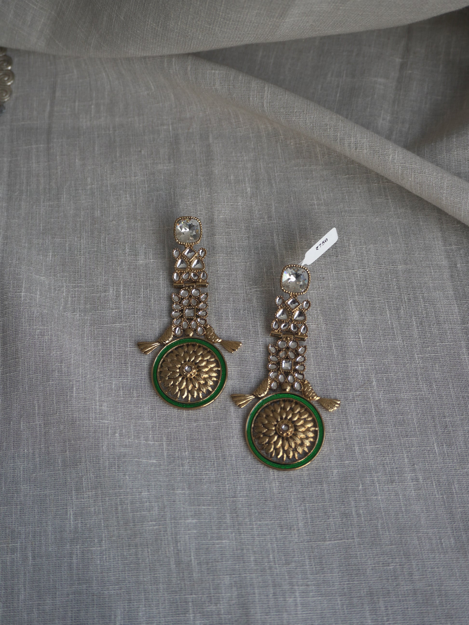 Elegant and statement-worthy, the Vanya Gold Kundan Earrings feature a bold floral medallion design paired with classic kundan detailing. Finished in a rich antique gold tone, these earrings strike the perfect balance between heritage charm and contemporary sophistication—ideal for festive wear, weddings, and special occasions.