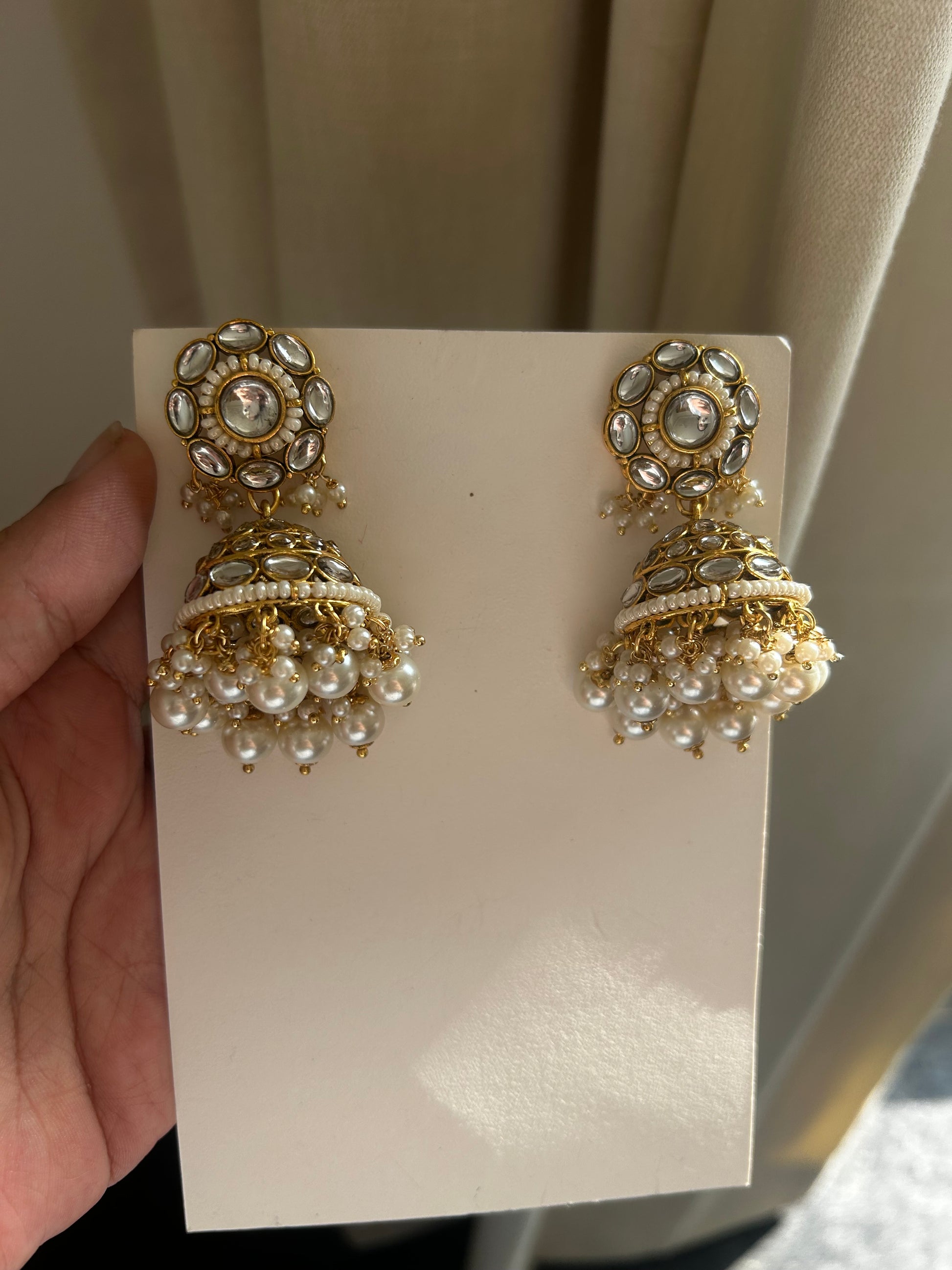 White Kundan Jhumkas with Hair Chain & Maang Tikka Set